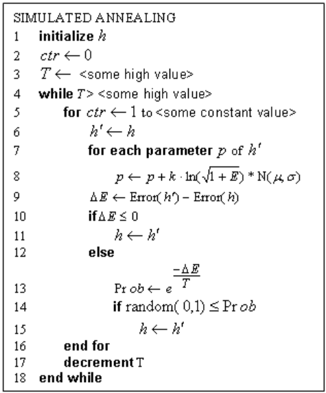 철제기구를 만들 때, 뜨거운 상태에서 온도를 낮추며 경도를 높이는 것처럼, 초기에 좋지 못한 값을 선택하다가 점점 좋을 값을 찾아내는 것이 Simulated Annealing 알고리즘입니다.