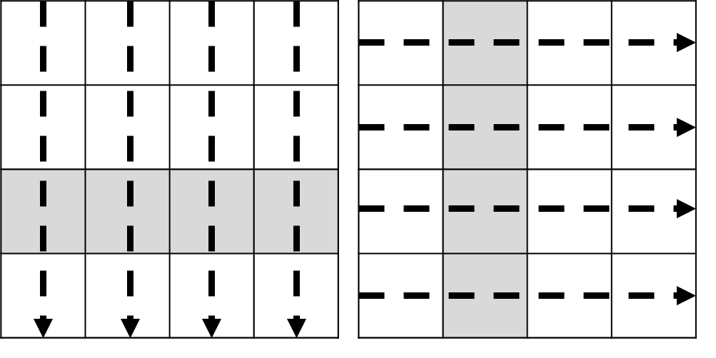 # n x n의 크기라 행과 열을 함께 처리하면 원상복구되는 데이터가 있어서 그런 것으로 판단