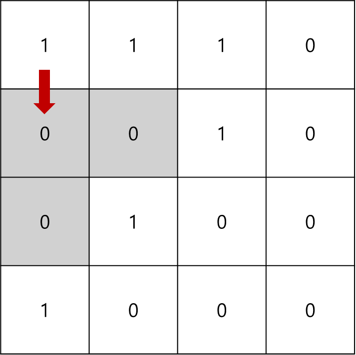 즉 위와 같이 첫 1에서 출발해 0인 빈 공간을 탐색한 뒤에는, 나머지 인접한 1에서 해당 빈 공간을 탐색할 필요가 없다는 것입니다.